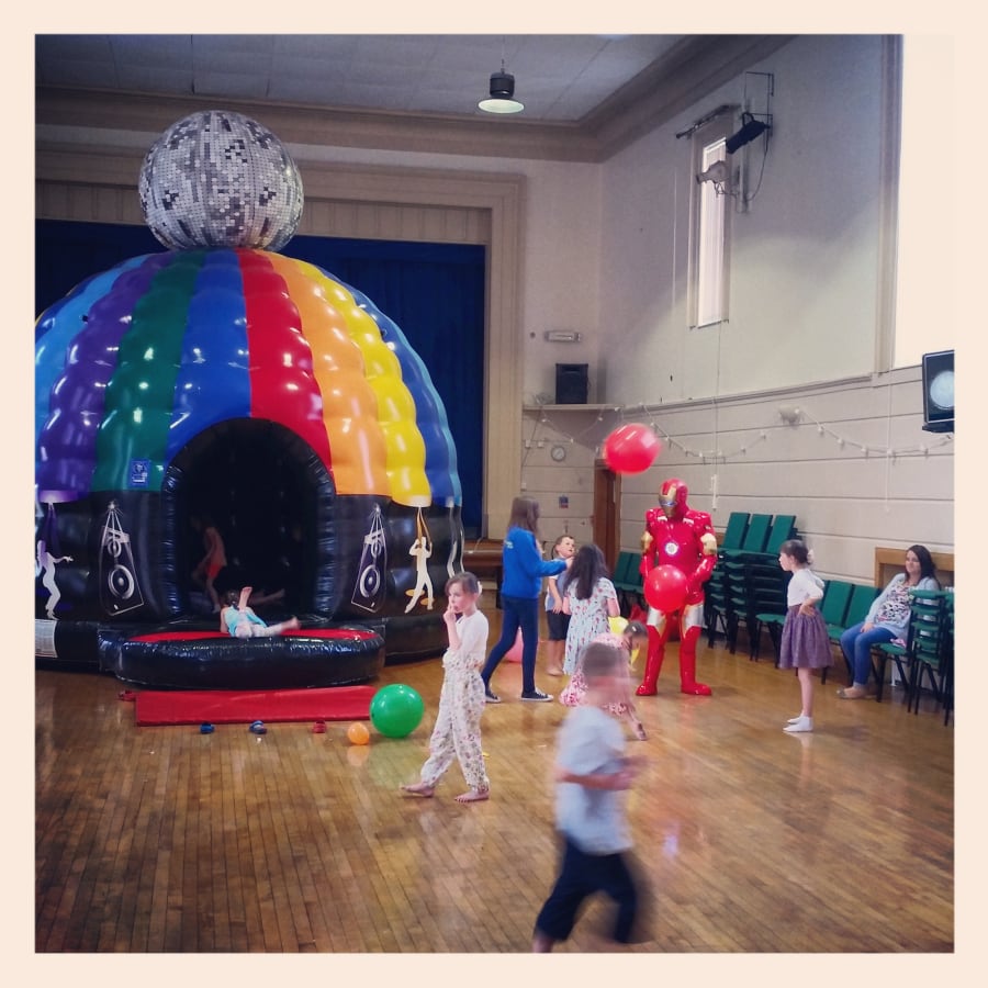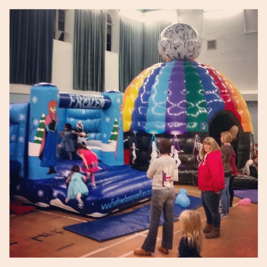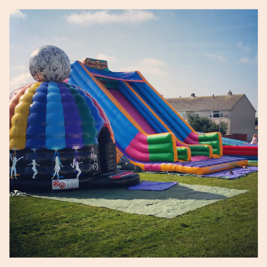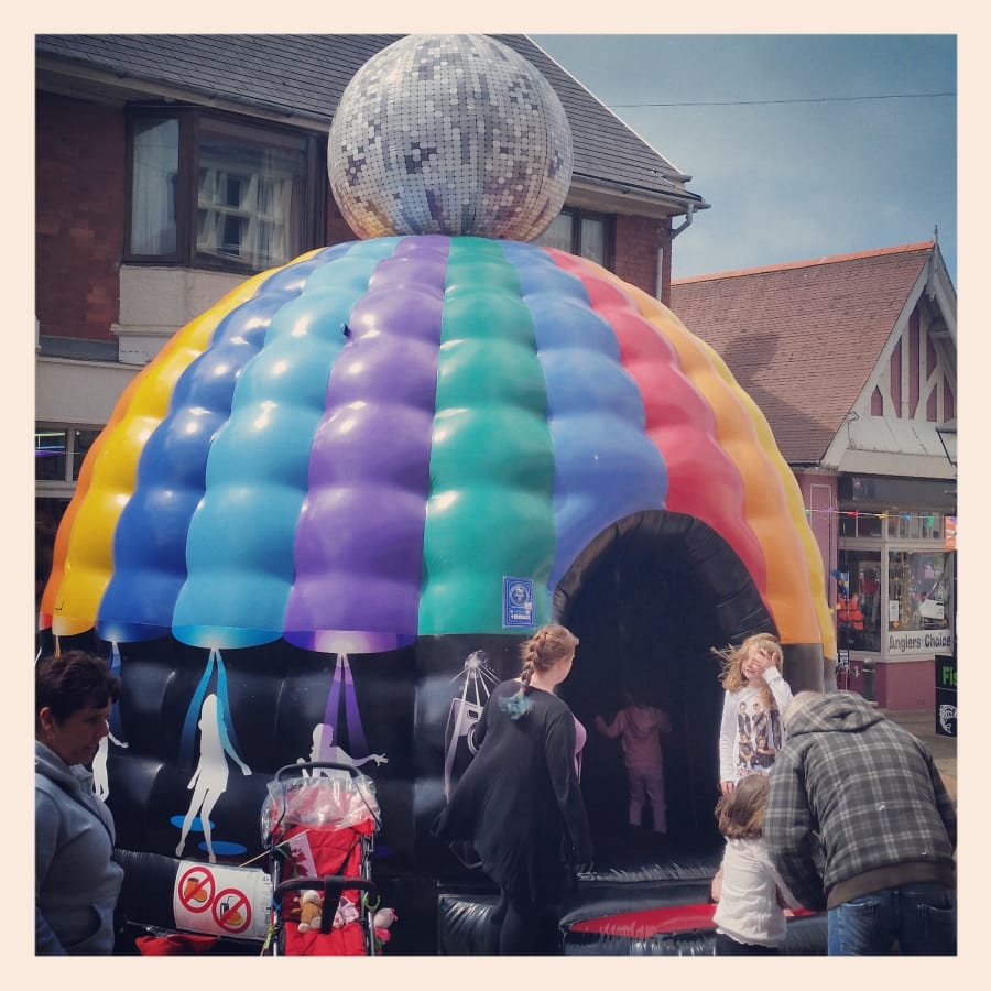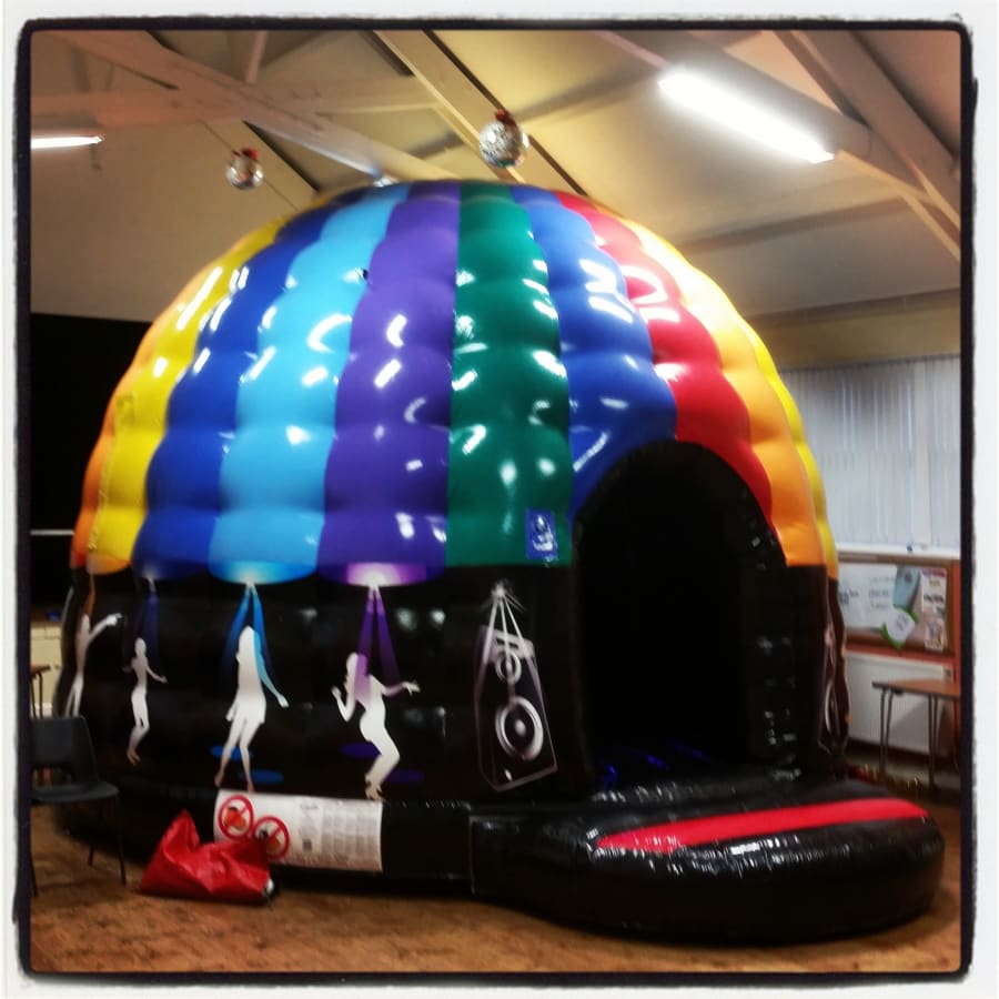 Our Brand New & Exclusive Glitter Ball Disco Dome Bouncy Castle is the ultimate answer to a difficult question for parents!....."Do we have a children's Disco or bouncy castle party??". Well that is no longer a problem with our incredibly spectacular Glitter ball Disco Dome. It comes with an internal lighting & sound system for the ultimate bouncy party experience.