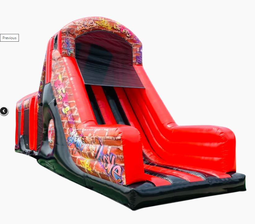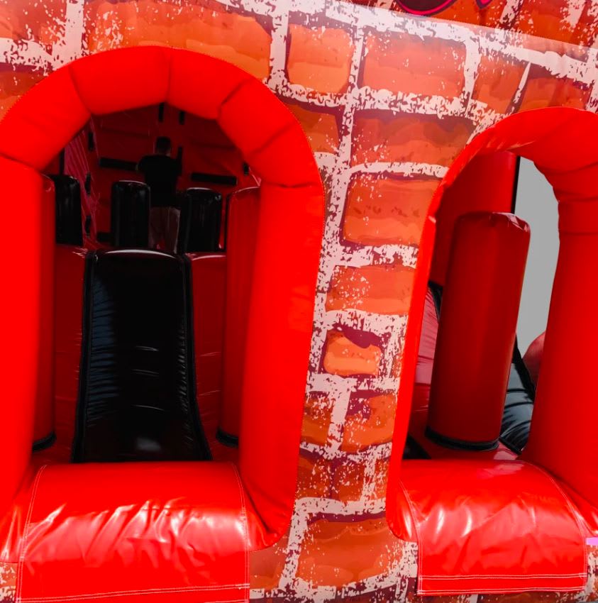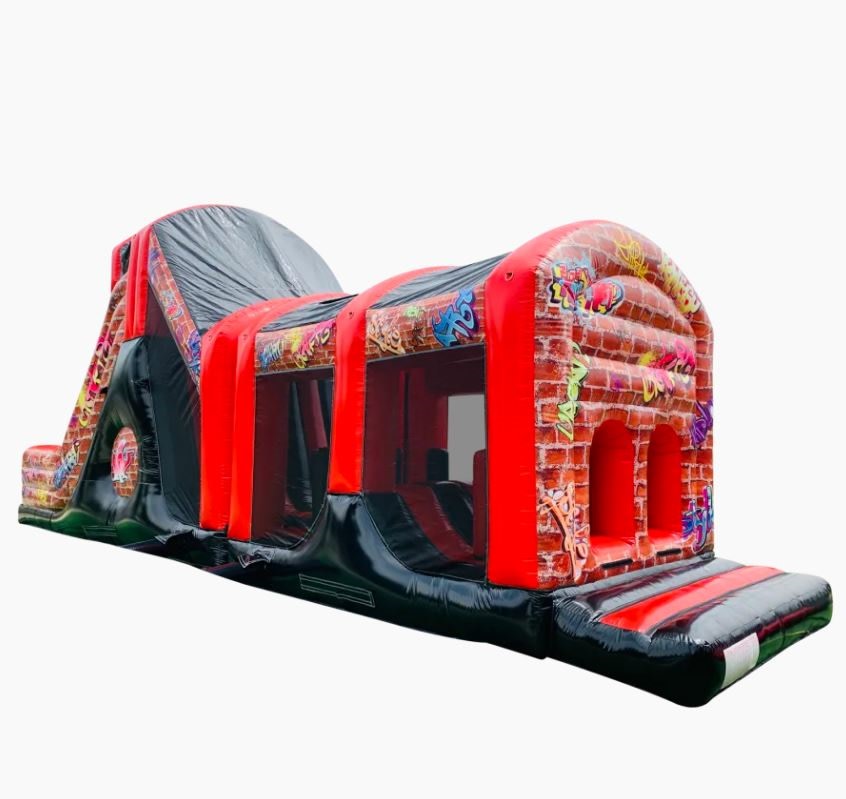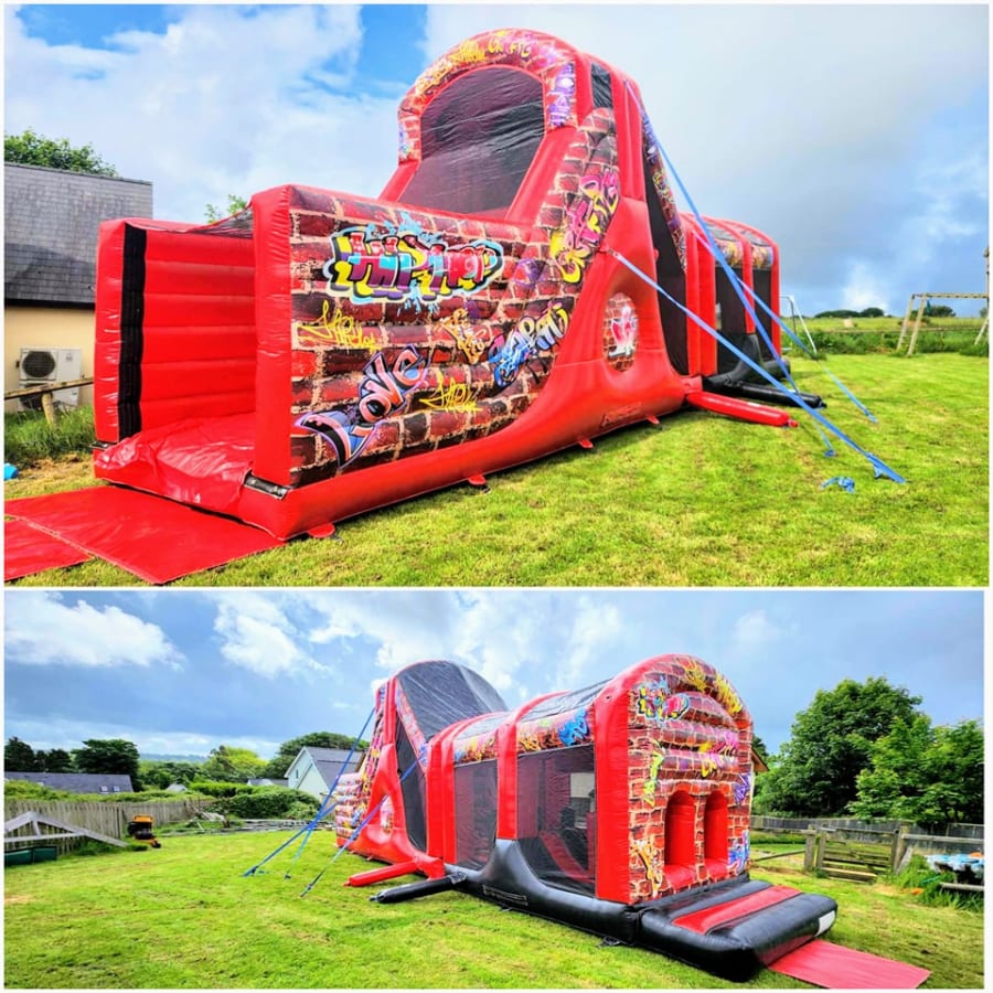 2 Part ADULT Build Your Own Giant Obstacle,10ft slide - 40x11x15ft - (Red & Black Graffiti) - Assault Course hire in Pembrokeshire, Carmarthenshire, Swansea & Ceredigion.