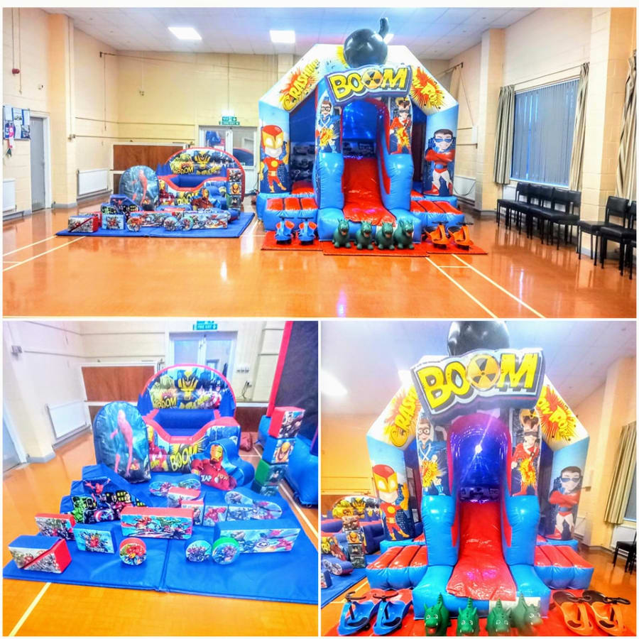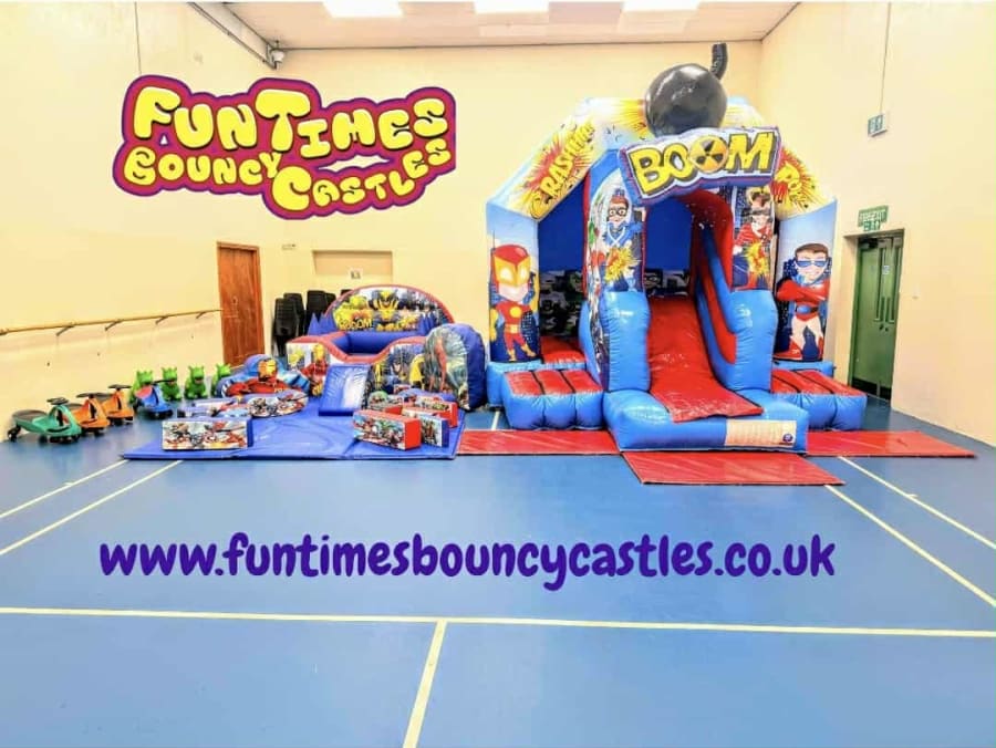 Transform your party into a thrilling superhero adventure with our 3D Superhero Package! The package includes a vibrant 3D Superhero Disco bouncy castle/slide combo, matching Superhero-themed soft play, and an exciting air juggler ball pit. Get ready for endless entertainment as the little ones jump, slide, and play in this superhero-themed wonderland!