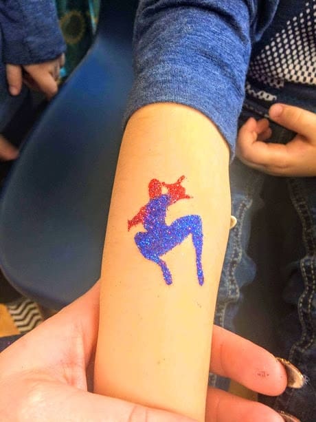 Our Glitter Tattoo artist is becoming a ever more popular option! And a different option to face painting .