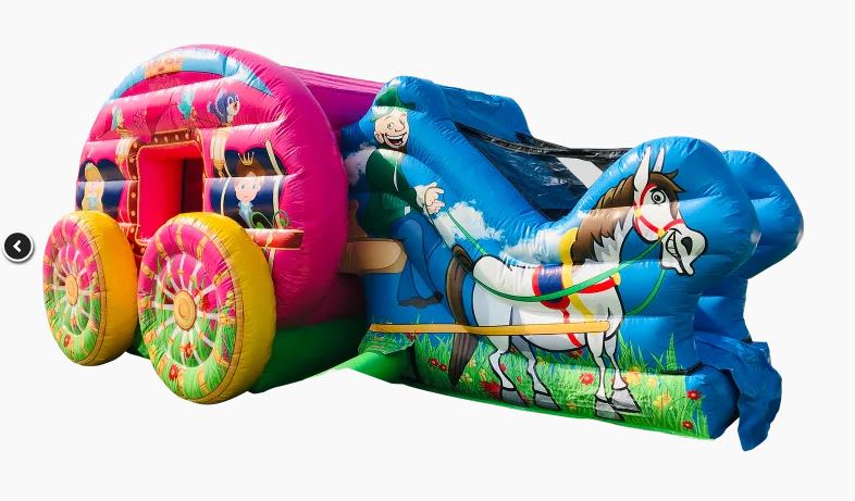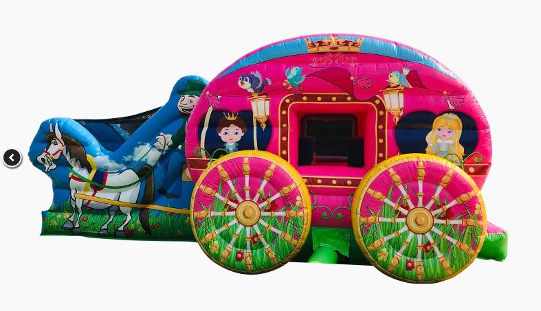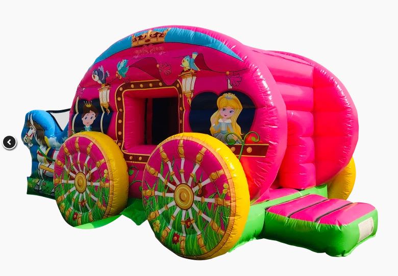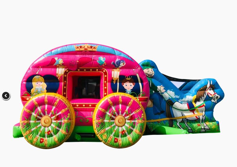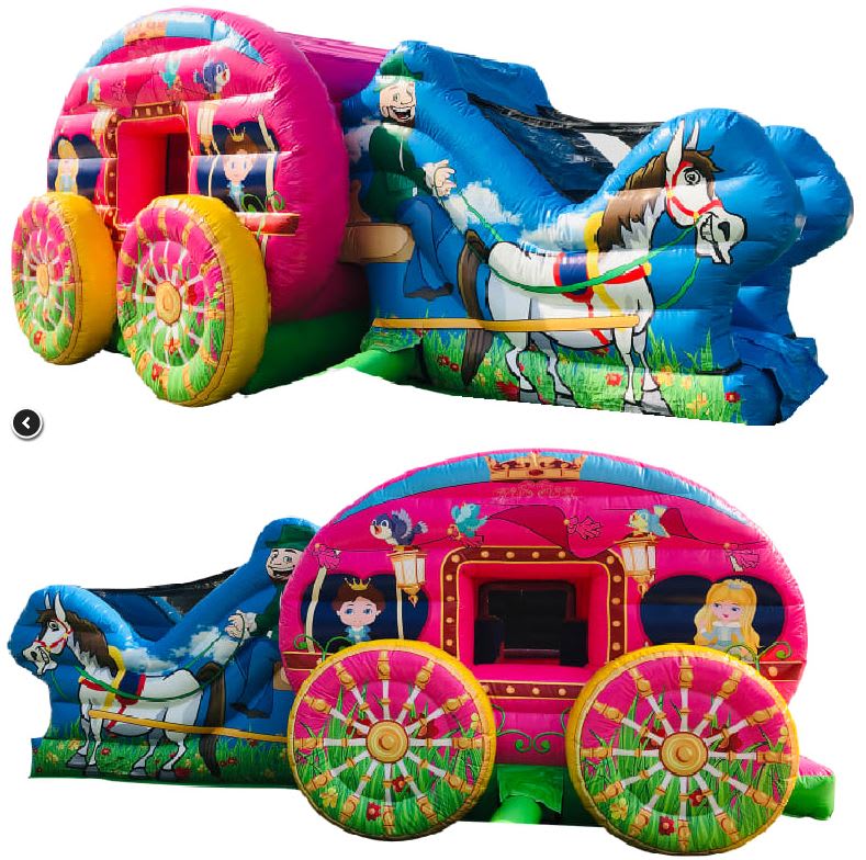 This 3D PRINCESS CARRIAGE Castle Slide combo is available for hire.