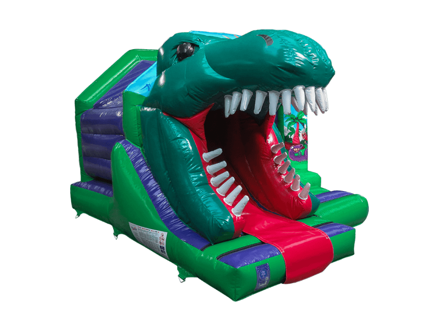 This 3D DINOSAUR Bouncy castle slide combo which is Disco capable is available for hire near me.