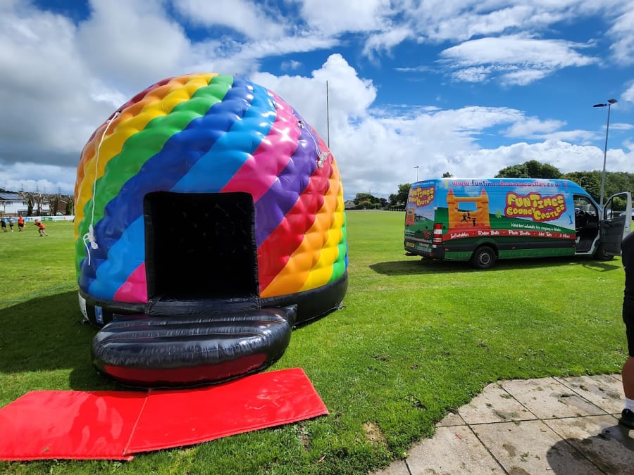Our Brand New & Exclusive CANDY TWIST Disco Dome Bouncy Castle is the ultimate answer to a difficult question for parents!....."Do we have a children's Disco or bouncy castle party??". Well that is no longer a problem with our incredibly spectacular Glitter ball Disco Dome. It comes with an internal lighting & sound system for the ultimate bouncy party experience.