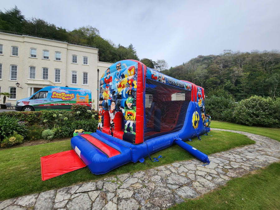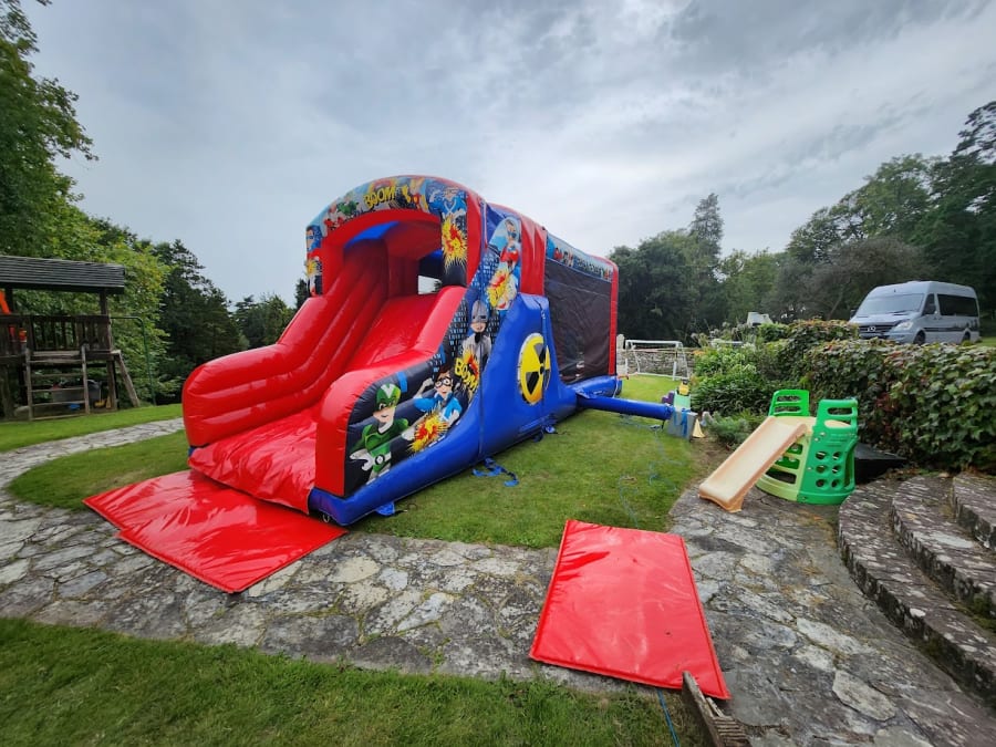 The fun run is ideal for all those little one's wanting to celebrate their big day. An absolute party favourite, it can also be used for other occasions such as weddings, christening and many other fun days and can accommodate for young toddlers to young teenagers. This fun run is designed with a large assault like/ bouncing area but also with a slide so it gives the users that little extra excitement of a slide AND biff and bash pillows with some foam block square steps at the end to help get the users to the top of the slide.