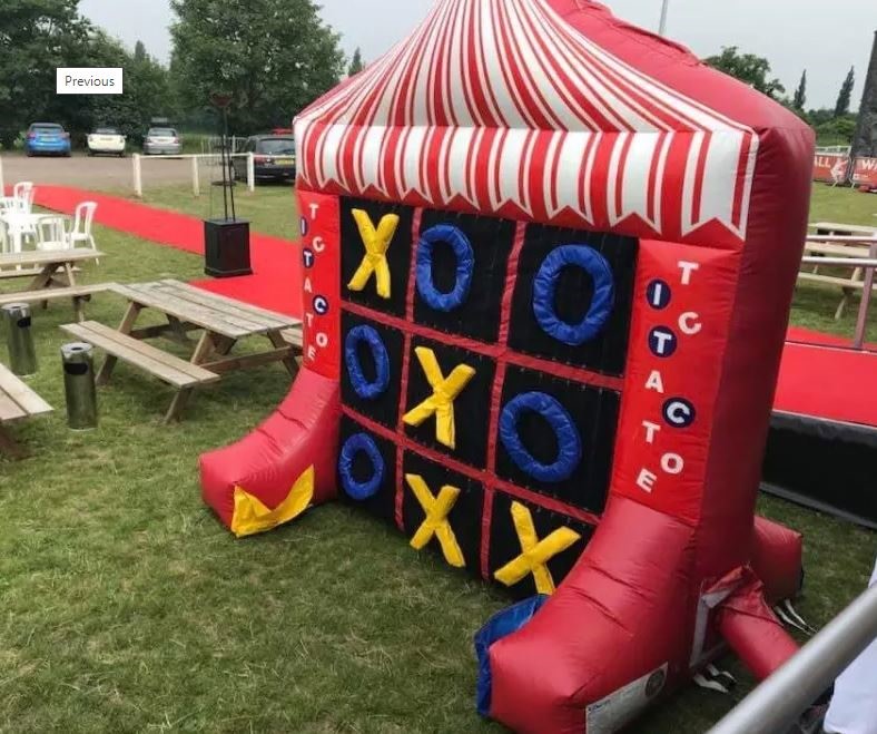 Game 2 (Tic Tac Toe) - The aim of the game is the exact same aim as the old school classic we all know and love but with a slight 3D twist. Each player must take it in turns to place tags on the giant inflatable board. This time though, The players can place the counters in any gravity defying position they like on the board making the game much more difficult to defend.