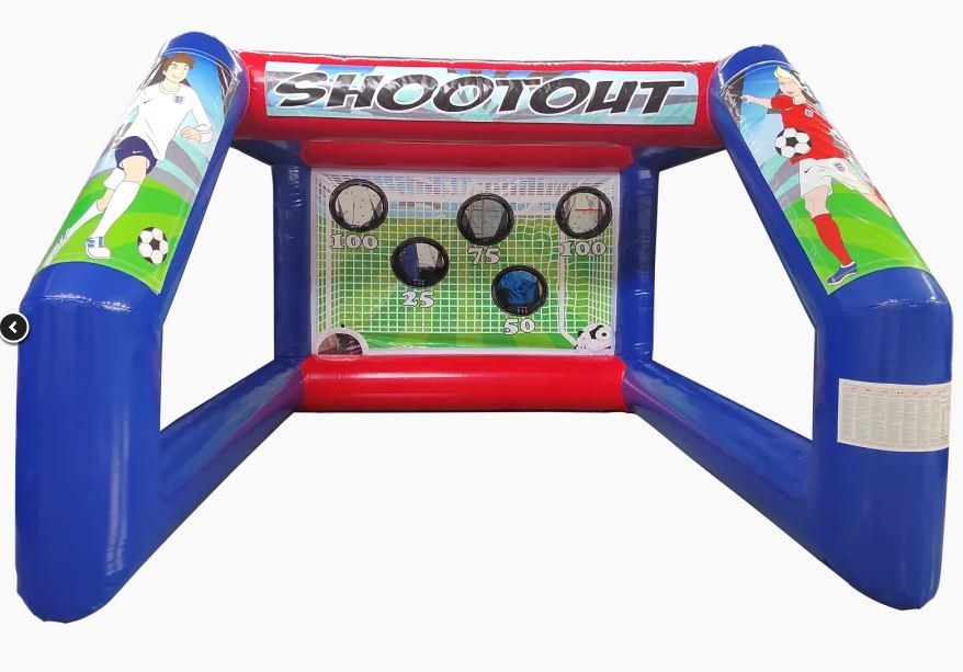 The inflatable penalty shootout is an Ideal carnival game, team building game, fundraiser and event showstopper and works really well when played as part of a time challenge with potential prizes for those able to score the most points.
