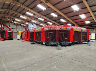 The artwork theme is absolutely fantastic and is the latest theme from our high adrenaline games range making it the perfect choice for your event. The overall height is only 15ft so its still suitable for large school sports halls, gymnasiums and large venues. The netted windows on the sides make parent or guardian supervision easy and ensure the users can be seen from all angled of the party or event for maximum safety.