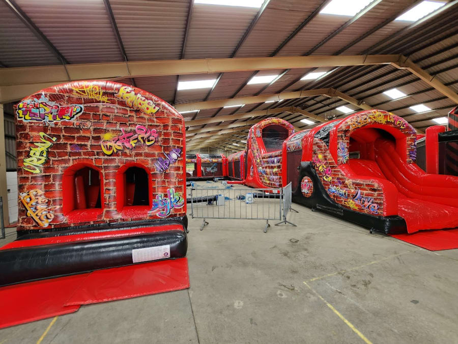 The obstacle course fully complies with EN14960 and can literally be designed in any shape and style you require in the future. We have everything from Balance beams, Climbing walls, Cliff jumps, Wrecking balls, Tunnels, Bashers, Crawl Tubes, Foam pits and much much more. This section incorporates an up and over slide, biff and bash, and bouncing area, hurdles, whackers, biff and bash posts, mini humps, obstacle humps, crawl through tunnels and much much more!