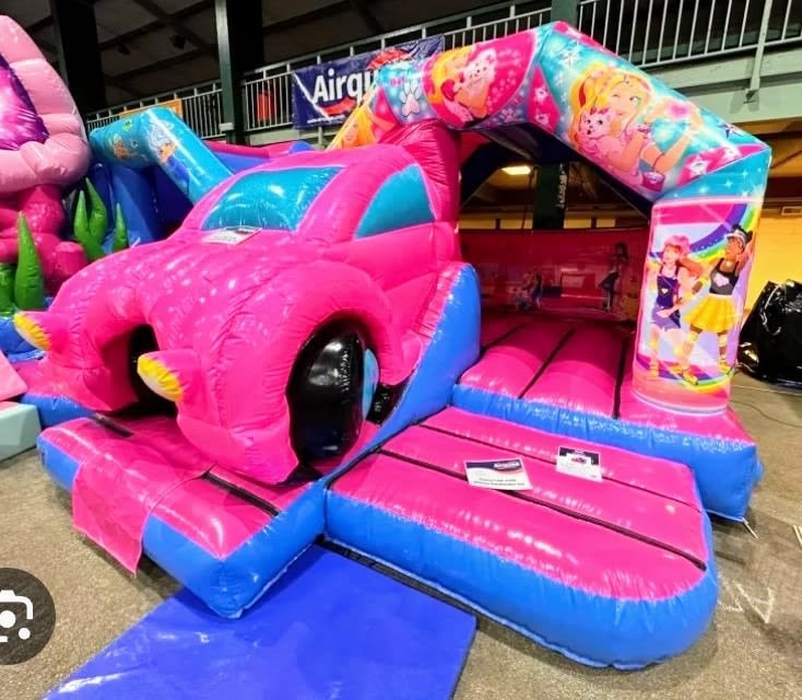 This 3D BARBIE/DREAMCAR Bouncy castle slide combo which is Disco capable is available for hire near me.