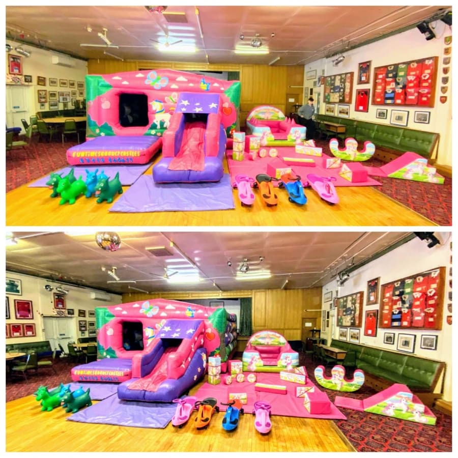 Make your child's party truly magical with our Unicorn Package! 🦄 This delightful package includes a charming Unicorn bouncy castle, matching Unicorn soft play, and an air juggler ball pit. The fun doesn't stop there - we also provide four pink Didi cars and 4 animal hoppers to keep the little ones entertained!