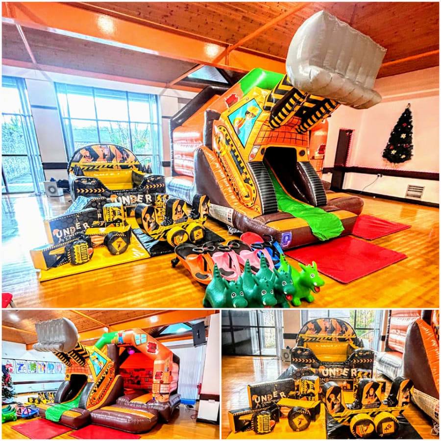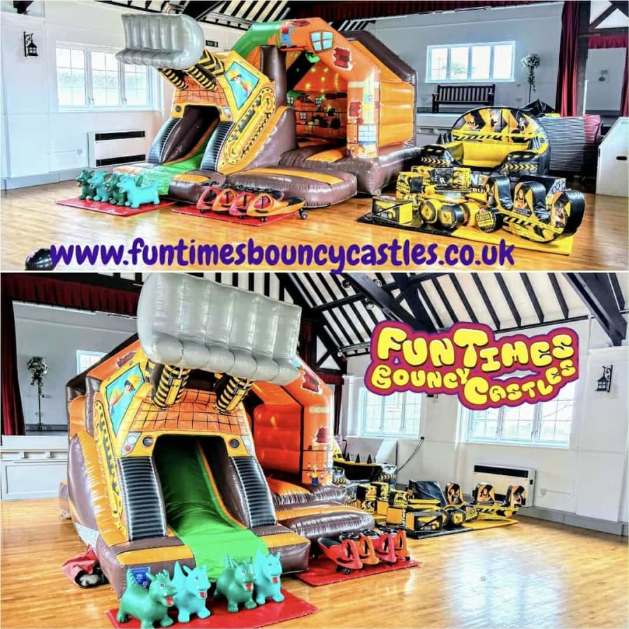 Our Digger/Construction theme bouncy castle/slide combo is the ultimate centerpiece for hours of bouncing and sliding fun. Paired with matching Digger/Construction themed soft play and air juggler ball pit, the package ensures non-stop entertainment. ποΈ