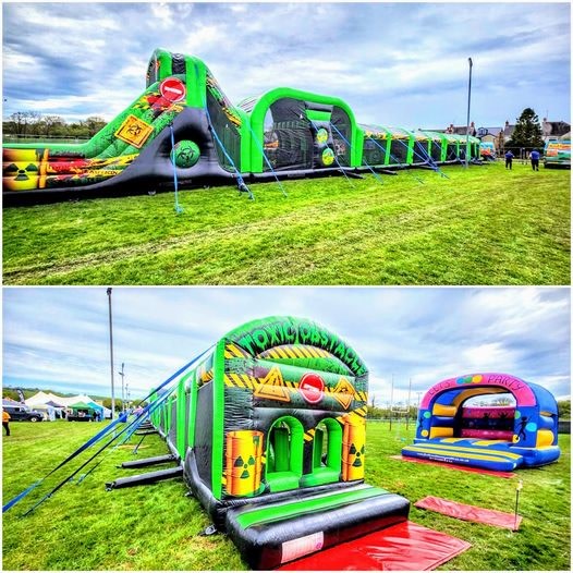 6 part Cliff Jump ADULT Build Your Own Giant Obstacle,10ft slide - 131x11x15ft - (Green & Black Toxic) - Assault Course hire in Pembrokeshire, Carmarthenshire, Swansea & Ceredigion.