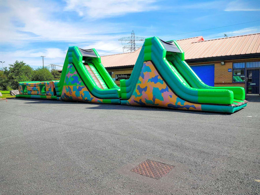 This brilliant inflatable assault course has Army themed artwork. The assault course is all hand painted and superbly manufactured. With multiple obstacles to climb over and work around, it is great fun for children or adults. The assault course can come in one or three parts depending on the space available and the type of event. You will not be disappointed with this versatile assault course.