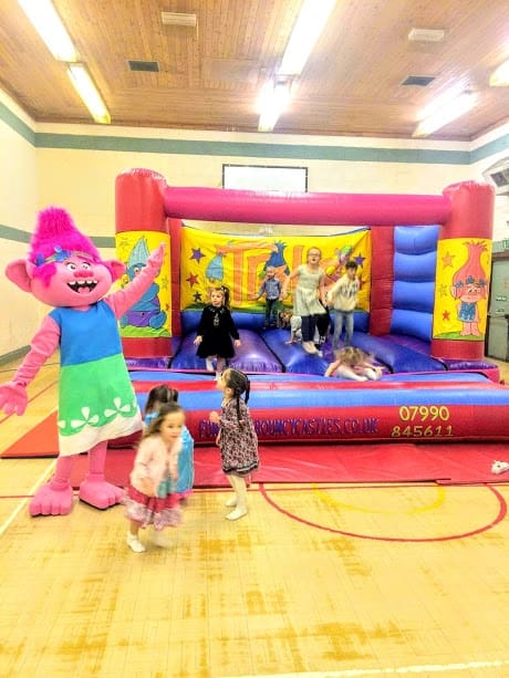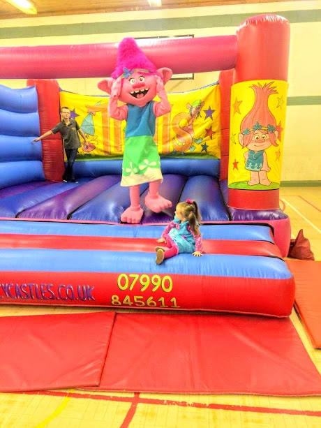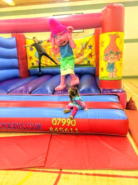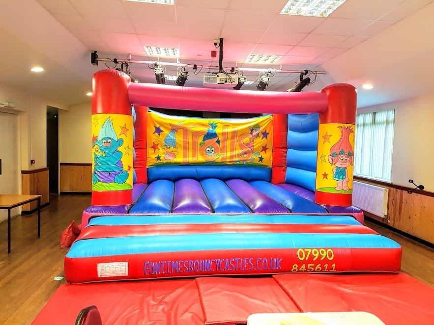 This TROLLS Theme Bouncy castle is available for hire across Wales