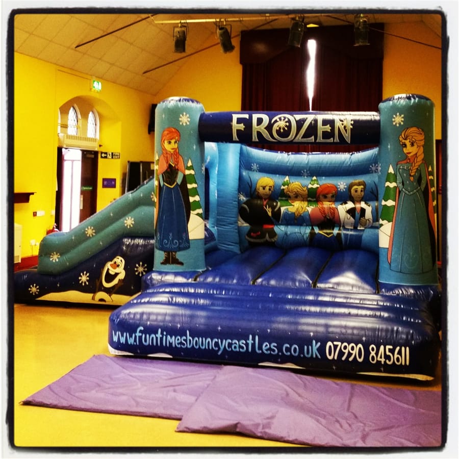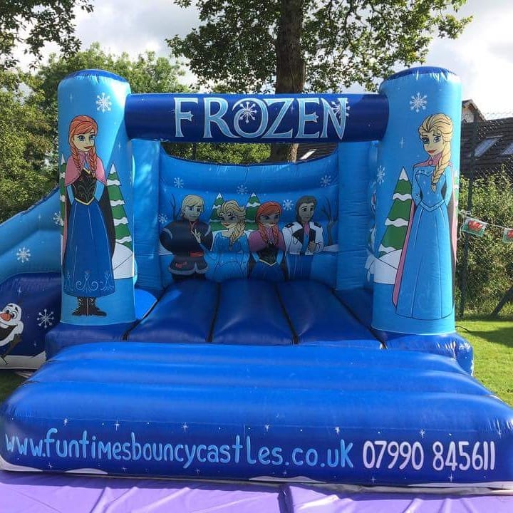 Our Frozen Bouncy Castle & slide combo is very popular for girls children's parties, and is for children's use only! This Frozen bouncy castle and slide combo is available for hire from the Fun Times Bouncy Castle team. Enjoy a fully-themed Frozen inflatable with the local experts.