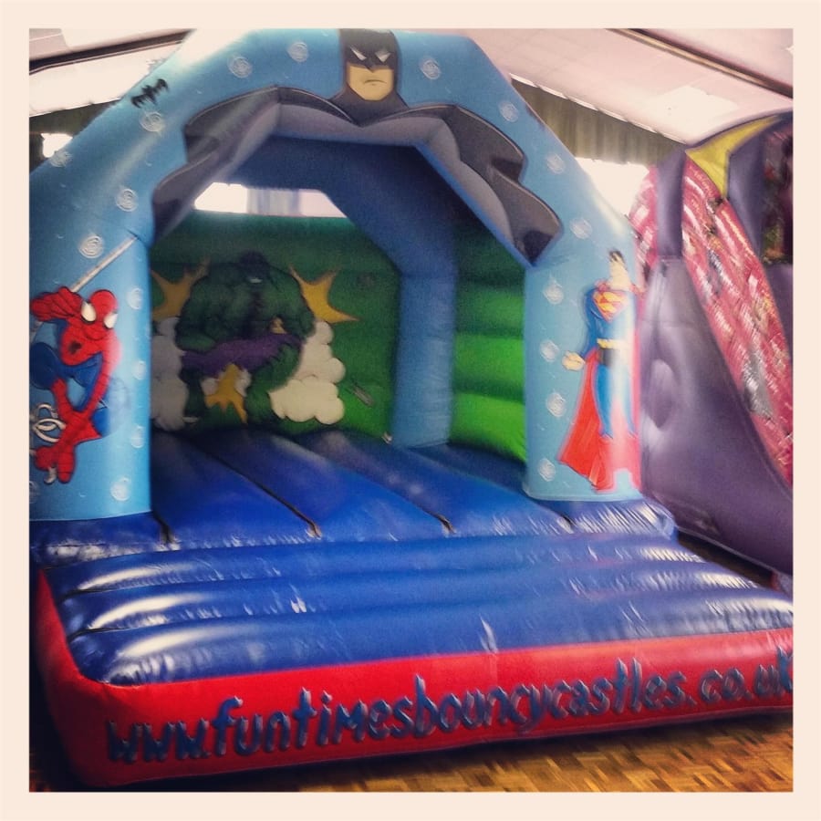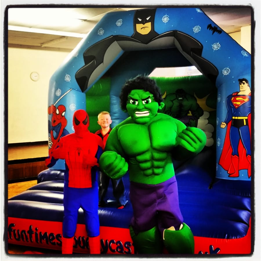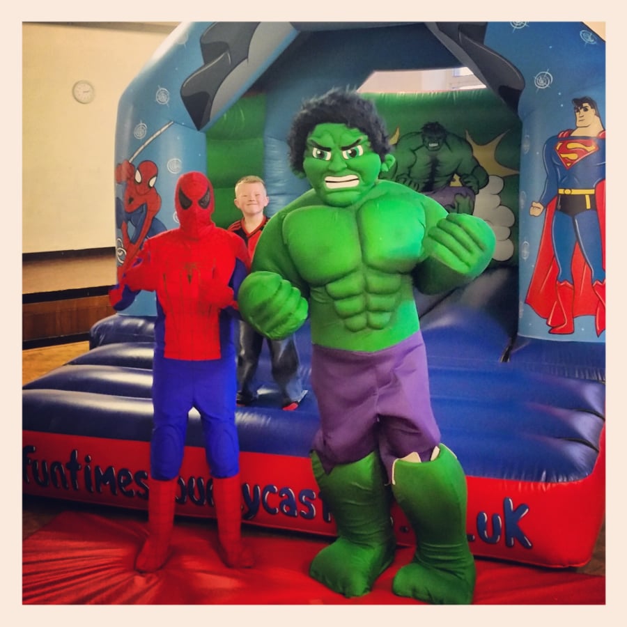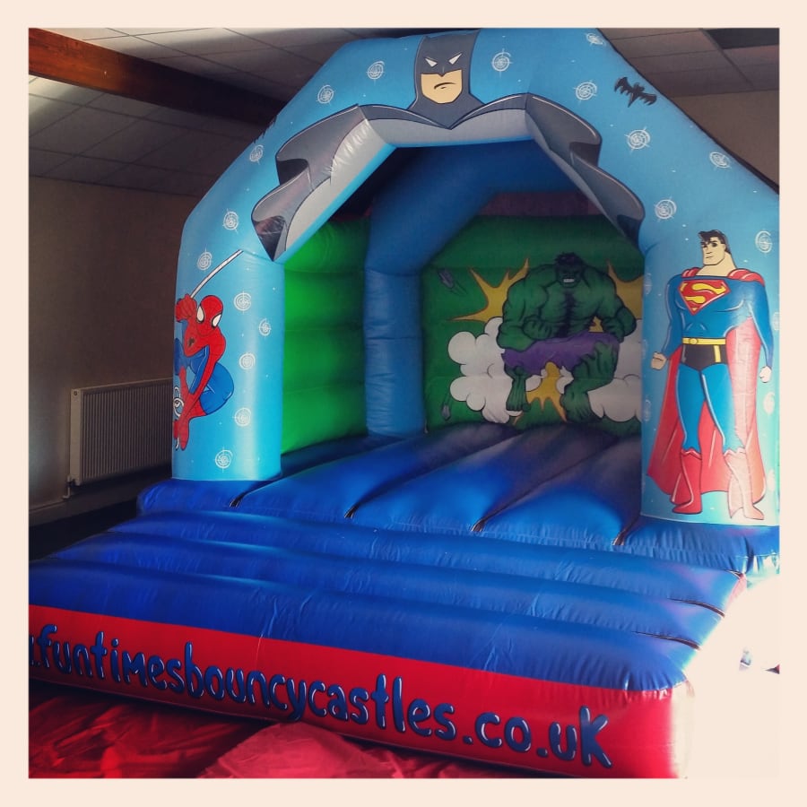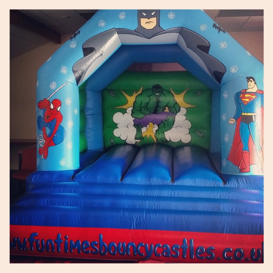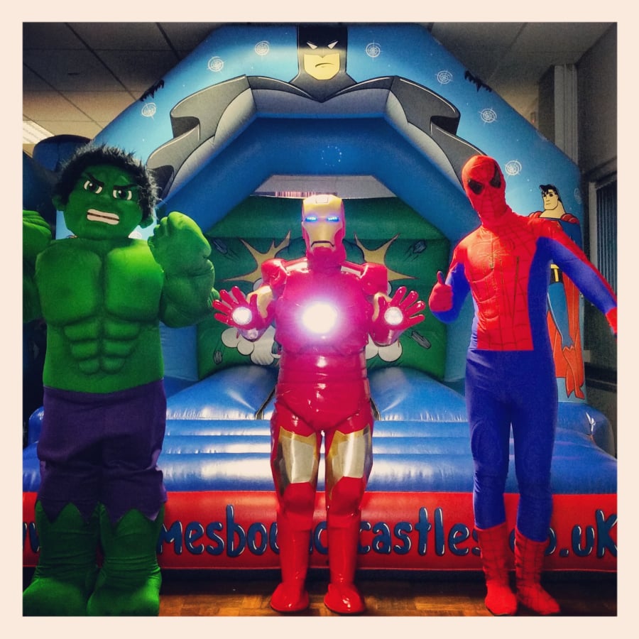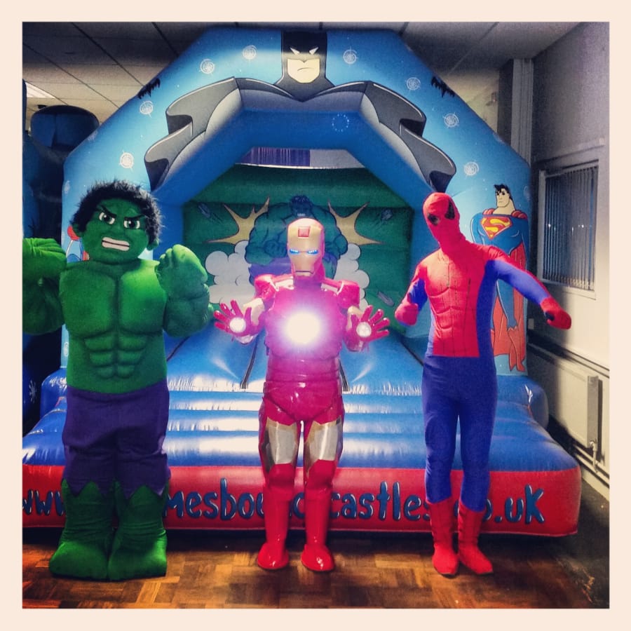 Why not hire this bouncy castle with any of our SUPER HERO CHARACTERS for the ultimate children's Super Hero party!