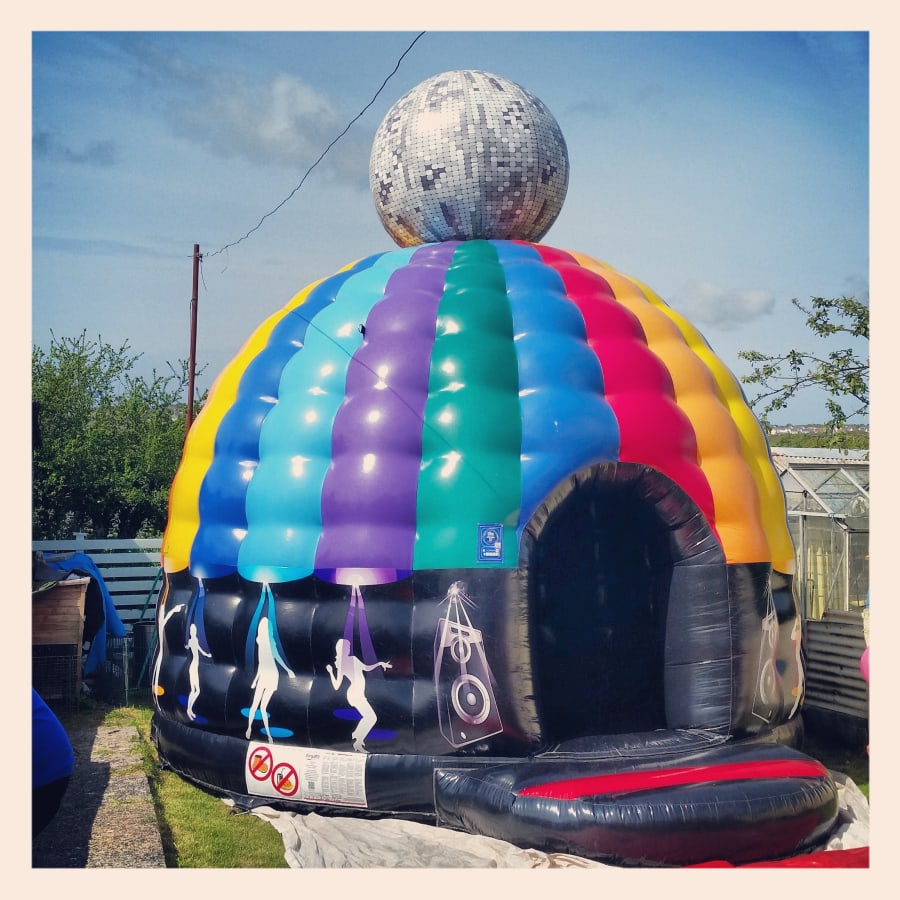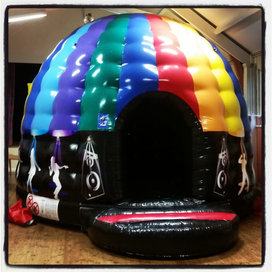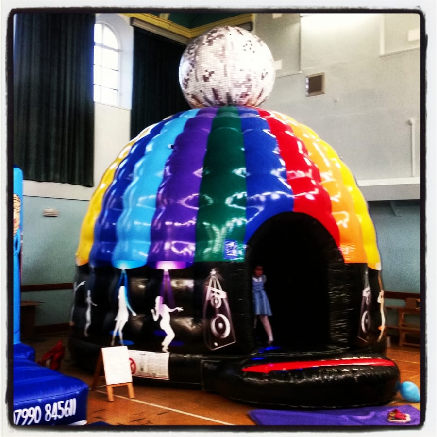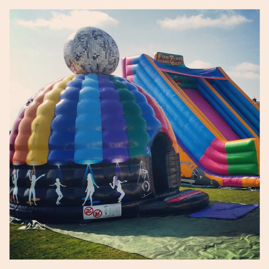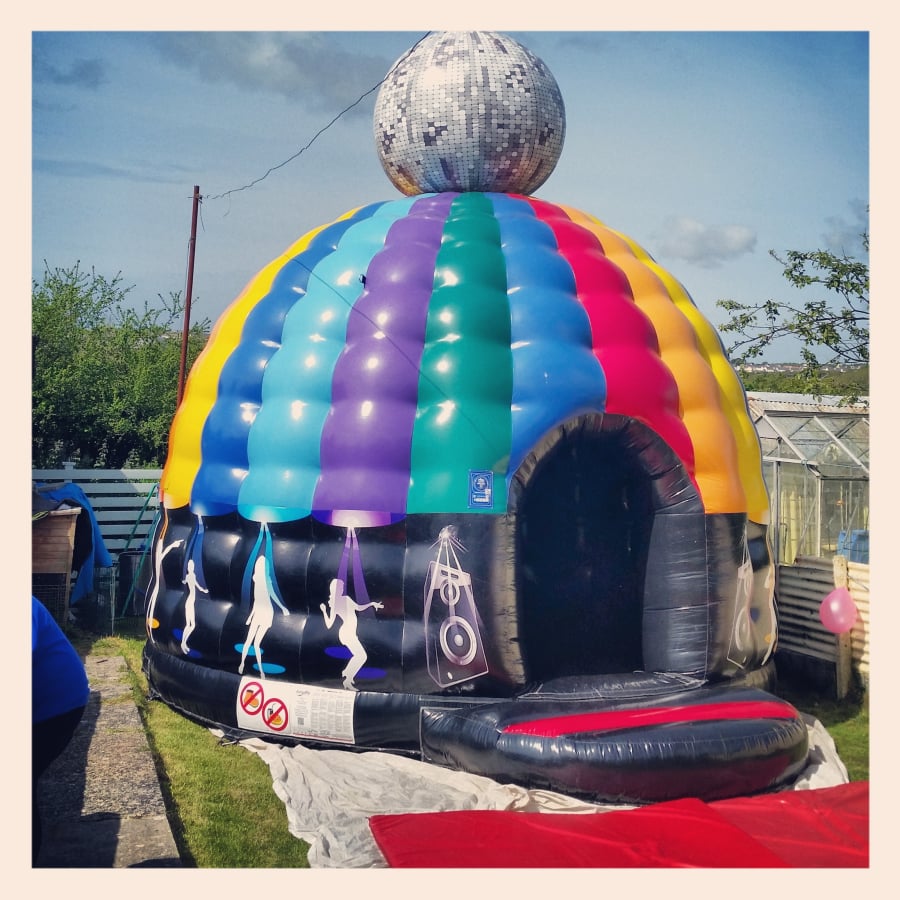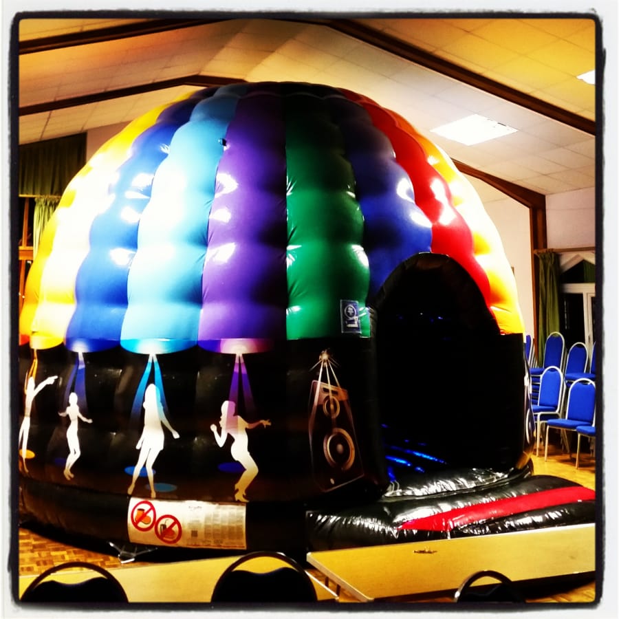 Our Brand New & Exclusive Glitter Ball Disco Dome Bouncy Castle is the ultimate answer to a difficult question for parents!....."Do we have a children's Disco or bouncy castle party??". Well that is no longer a problem with our incredibly spectacular Glitter ball Disco Dome. It comes with an internal lighting & sound system for the ultimate bouncy party experience.
