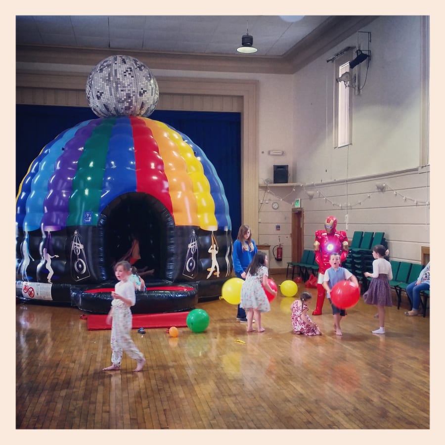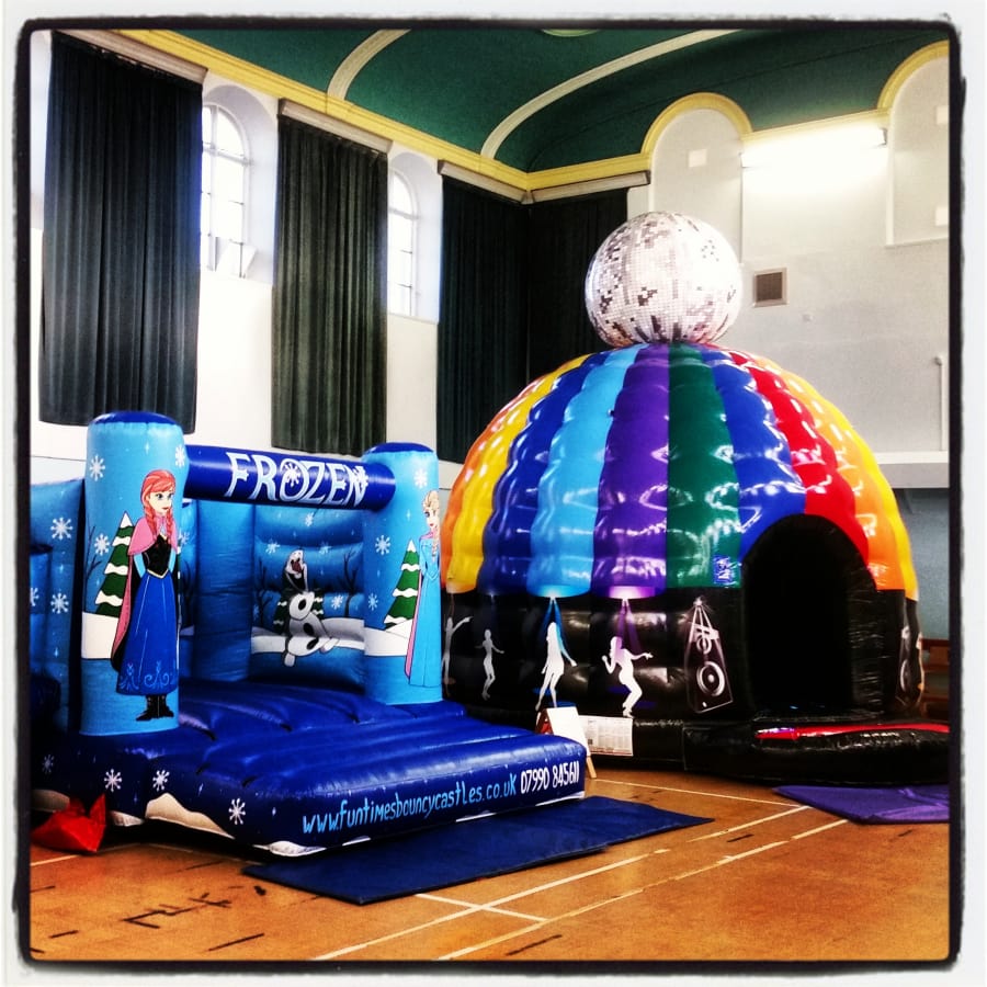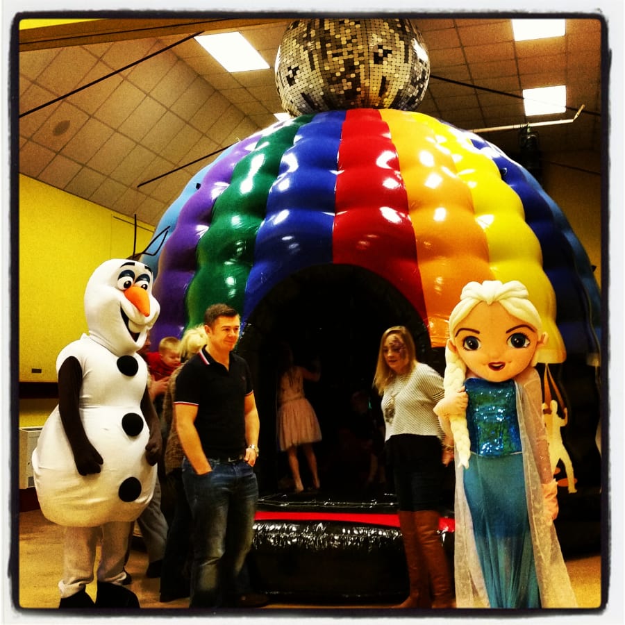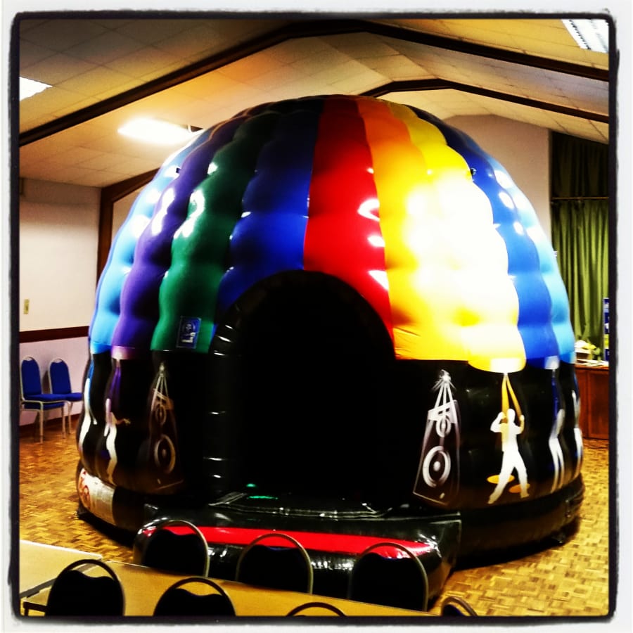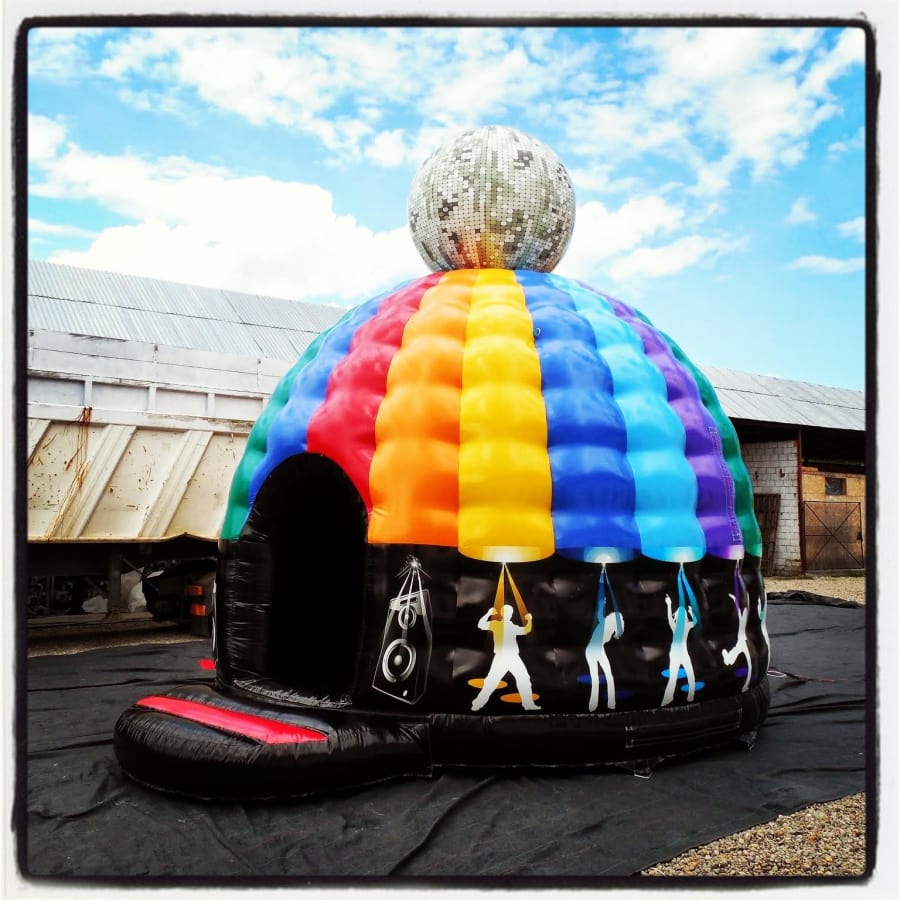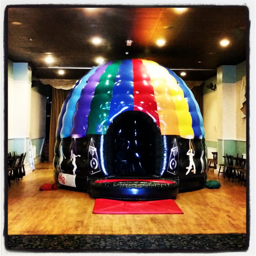 Our Brand New & Exclusive Glitter Ball Disco Dome Bouncy Castle is the ultimate answer to a difficult question for parents!....."Do we have a children's Disco or bouncy castle party??". Well that is no longer a problem with our incredibly spectacular Glitter ball Disco Dome. It comes with an internal lighting & sound system for the ultimate bouncy party experience.