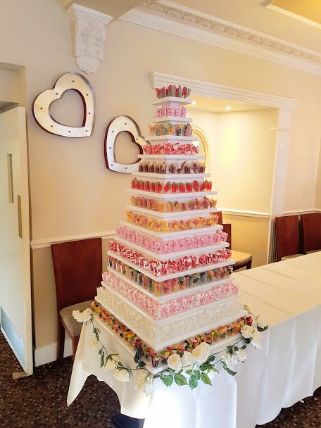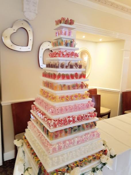 Our Sweet shot pyramid is incredibly popular for all type of events and occasions & has catered for events all over Wales. This particular item is very popular for weddings! It holds an impressive 450 plastic shot glasses full of different sweets on every tier. This is a visually impressive item to have in any room due to its height when placed on a table, yet easily reachable. It is a classy alternative to a sweet cart.