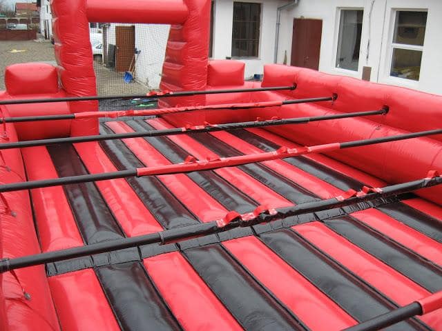 Our inflatable Foosball is an impressive size and has a real wow factor when seen due to its tall arches over it! At 53T x 26FT (Allow extra 5ft for blower tube), it is a very large unit so if you are wondering whether you have the room for it, please feel free to contact us on 07990845611 or message us through our contacts page.