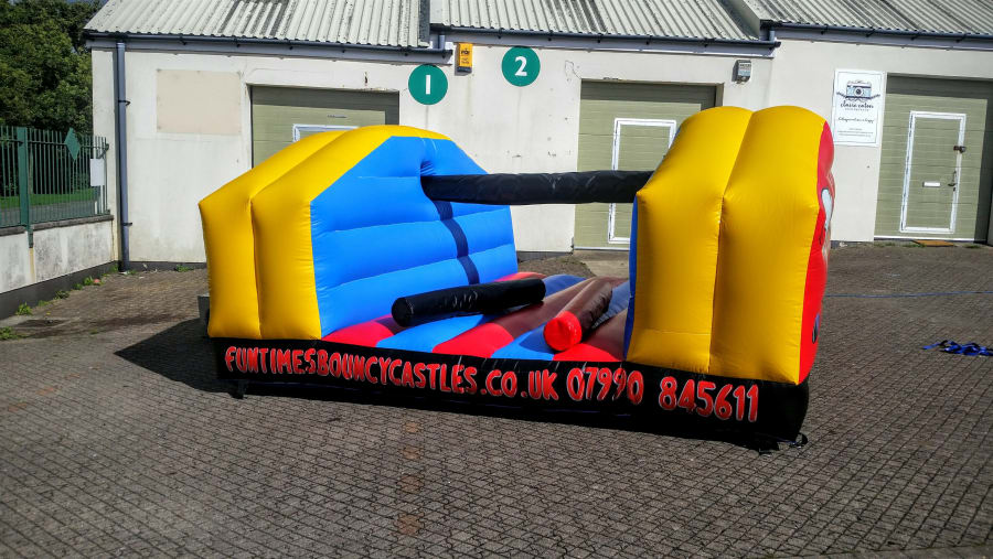 Our Pillow Inflatable is an incredibly eye catching Inflatable. It is incredibly popular for all type of large scale events and occasions & has catered for events all over Wales. This particular castle is very popular for Adult parties. It is also perfect for Corporate events, fairs & fetes! Due to its impressive Size is capable of both adult & children's use! Our Pillow Bash Inflatable is perfect If it is a competitive physical challenge you are looking for. Each of the two contestants sits on the pole and attempts to knock each other off by swinging there pillows at one another until one falls onto the inflatable bed below!