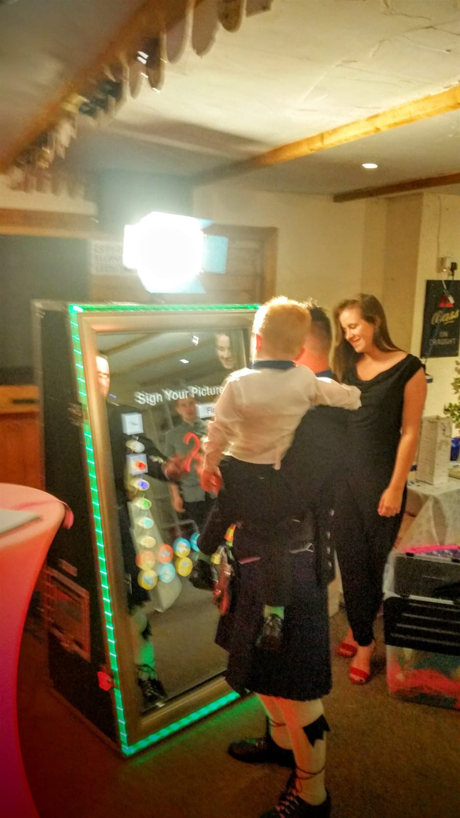 The Magic Photo Mirror is capable of taking both singular 6×4″ prints, as well as multiple shots, which create a 3 photo collage also on a 6×4″ print. Using the on screen paint pad, guests can scribble a custom message or their name to personalise their photo.