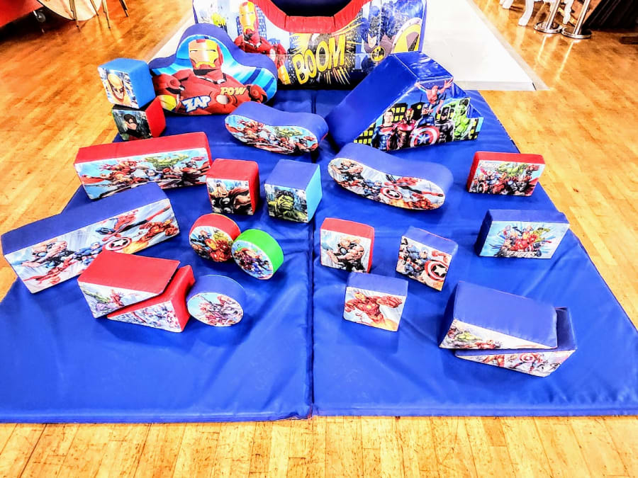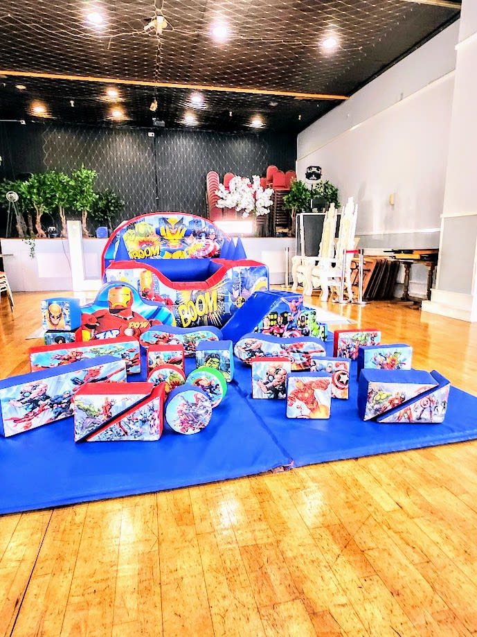 Our Superhero theme soft play set and air juggler ball pool is the an incredibly colorful & eye catching. This perfect choice for your little ones party! It has many different shapes and sizes including a soft play sea sore and baby slide.