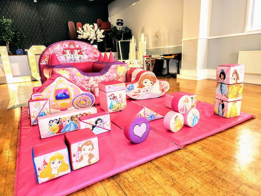 Our Princess theme soft play set is the an incredibly colorful & eye catching. This perfect choice for your little ones party! It has many pieces of different shapes and sizes including a soft play sea sore and baby slide. And also come with an incredible matching theme Princess theme air juggler ball pit
